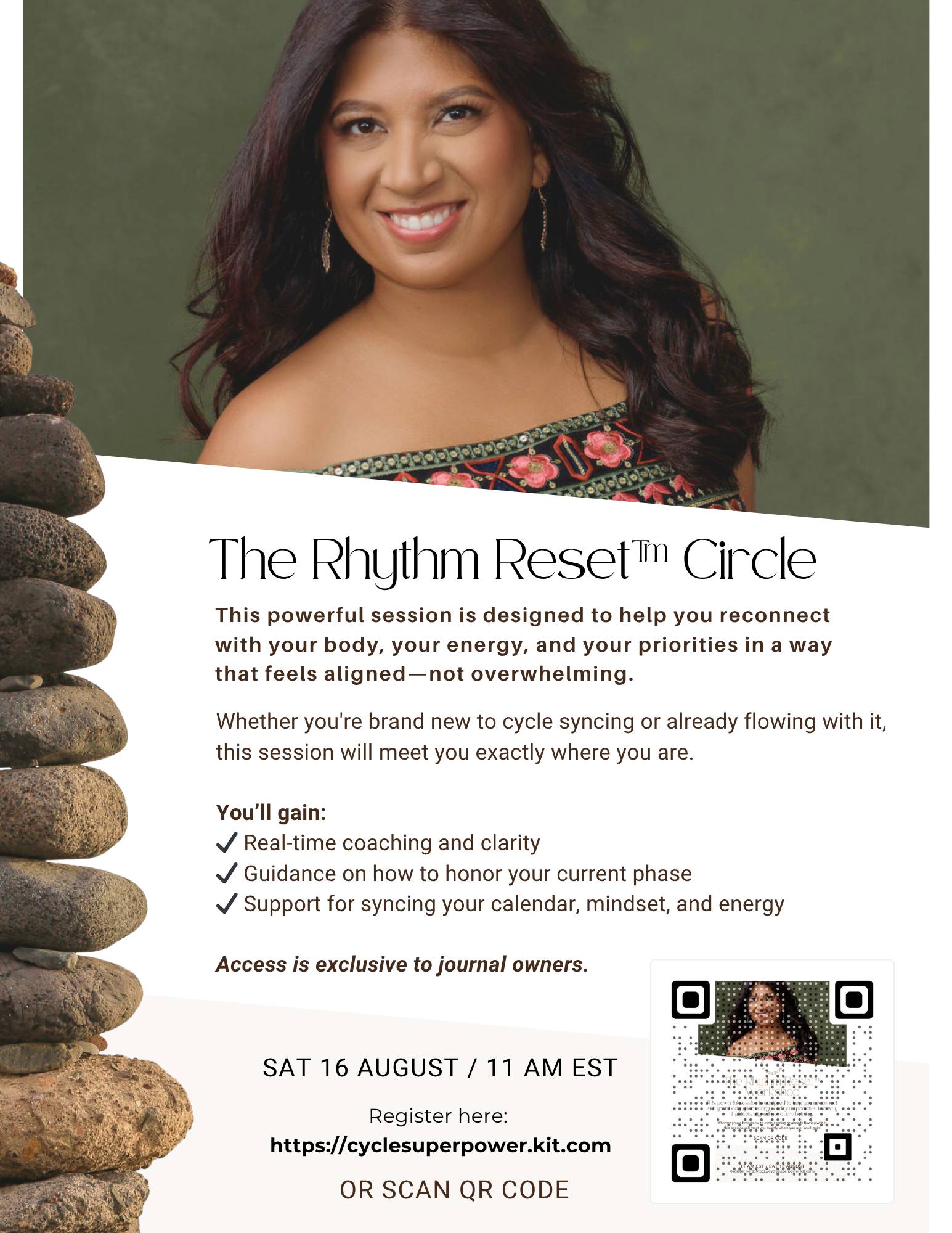 So often, when we hear about harnessing feminine energy and cyclical living, the focus tends to lean heavily toward rest. But let’s be real. That’s why I take a different approach: We ebb and flow. Our energy, clarity, drive, and needs shift with our internal rhythm. The key is awareness. Alignment. Flow. That’s exactly what we’ll be diving into during my new A powerful session to help you reconnect with your body, your energy, and your priorities. Whether you’re new to cycle syncing or already in sync with your inner rhythm, this circle will meet you right where you are. You'll receive: This isn’t about slowing down for the sake of it. Let’s reset your rhythm. Together. |